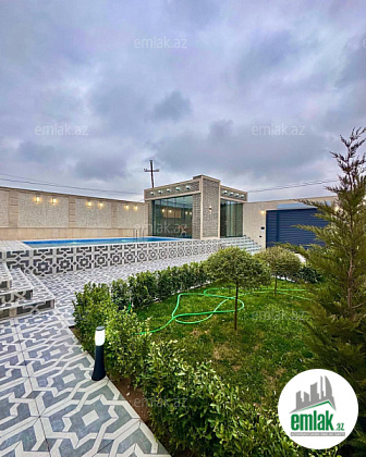 Mərdəkan gəsəbəsi 4.5 sotda yeni inşa edilmiş bağ evi TAM ƏŞYALI formada satılır, 170 kv.m, 1 zal, 3 yataq, 3 s/q evdə və 1 s/q həyətdə, əla təmirlidir, ev çox keyfiyyətlə inşa edilib, isti döşəmə, kombi istilik sistemi, filterli hovuz, söhbətqah, teras, manqal, qaz, su və işıq daimidir. Çıxarışı var. Bag yaşayış massivində yerləşir və il boyunca yaşamaq üçün yararlıdır. Yolu asfalt örtüklüdür.