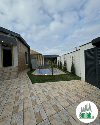 Mərdəkan qəsəbəsində 3 Sotda 1 mərtəbə 110 kv.m 3 otaqlı super bağ evi satilir. Bağ evi zal+studio mətbəx, 2 yataq otağı, holl və sanuzeldən ibarətdir. Otaqlarda asılmış pərdə və lyüsturları, hündür tavanları, duş kabinalı sanuzeli, mebelli mətbəxi, quraşdırılmış işıqlandırma sistemi var. Ev yüksək zövq və keyfiyyətlə təmir olunub. Su, qaz, işıq daimidir. İstilik sistemi kombidir, isti döşəməsi var. Həyətində geniş filterli hovuzu, besedka, manqalxana, söhbətgah, maşın saxlamaq üçün yer, pultla idarə olunan darvaza, yaşıllıq ərazisi, dekorativ ağacları və gülləri, su anbarı, sensorlu gecə işıqları var. 4 mövsüm yaşamaq üçün əlverişlidir. Yolu qapıya kimi asfaltdır. Kupçası (Çıxarışı) var.
