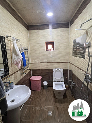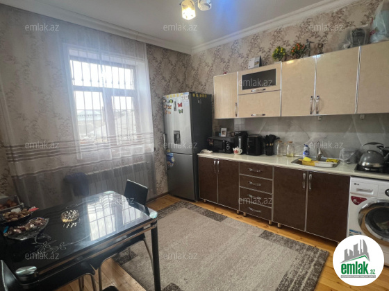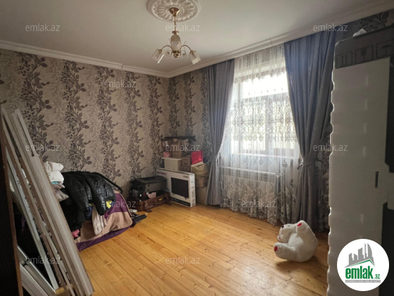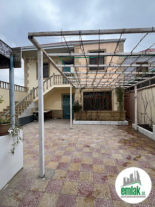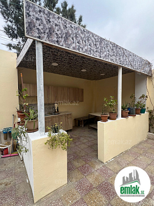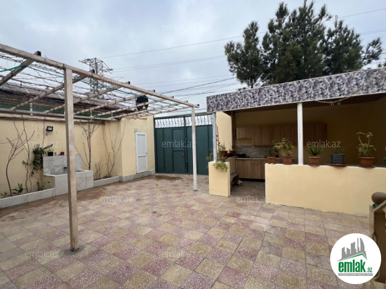 Şexsi tikilmis heyet evidir . Alt ust monalit betondur...7 otagdan ibaretdir . Orta temirli 6 sotun icinde.Otaglar genisdir. Evin icinde heyetin de hamam sanuzel var. Heyetde 10 t su baseyini var. Qaz su isig internet ...