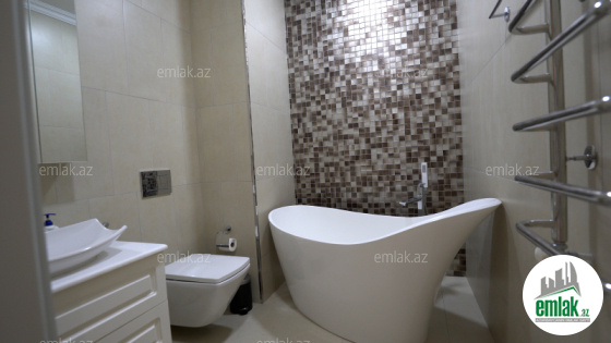 MƏRKƏZ!!! QAZ+ ÇİXARİŞ! SƏMƏD VURĞUN KÜÇƏSİ! Özünün qapalı yaşıl həyəti, besedkaları və uşaq meydançaları olan prestijli kompleksdə 3 otaqlı əla keyfiyyətli, dizayner təmiri ilə (təmir zamanı bahalı materiallardan və aksesuarlardan istifadə olunub) şəhərə və dənizə panoraması olan, bütün əşya və avadanlığı ilə təklif edilir. EKSKLÜZİV! Təcili satılır!