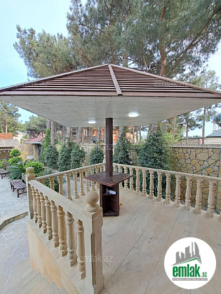 Həyətində filterli hovuzu, manqalı, söhbətgahı, maşın saxlamaq üçün sahəsi, geniş yaşıllıq ərazisi və müxtəlif növdə dekorativ ağacları var.