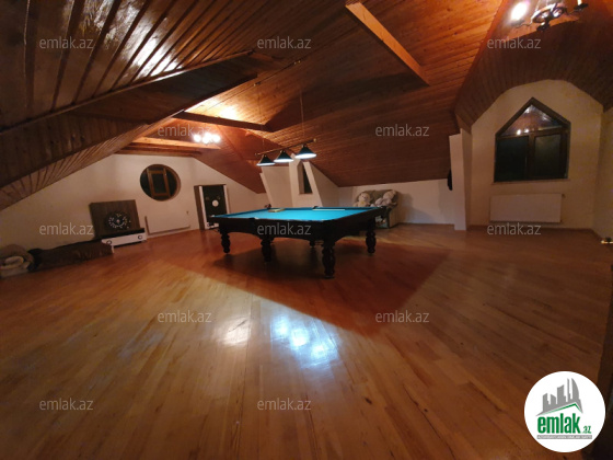 Yaşayış evi 3 mərtəbədən ibarətdir. Qaz, su, işıq daimidir. Həm şirin quyu suyu, həm də çəkilmiş şirin su mövcuddur. Keyfiyyətli təməl üzərində tikilmiş daş konstruksiyalı ev. 1-ci mərtəbə geniş zal, kamin, mətbəx, 2 sanitar qovşağından ibarətdir. 2-ci mərtəbədə 4 geniş otaq və 2 sanitar qovşağı var. 3-cü mərtəbə mansard 97 m² zal, sanitar qovşağı və dəniz mənzərəli böyük balkondan ibarətdir. Həyətdə böyük əsas hovuz və uşaqlar üçün ayrıca hovuz var. Əlavə olaraq yay mətbəxi, besetka, manqal mövcuddur. Həyət dekorativ bitkilər, müxtəlif meyvə ağacları, güllər və yaşıllıq ilə bəzədilib.