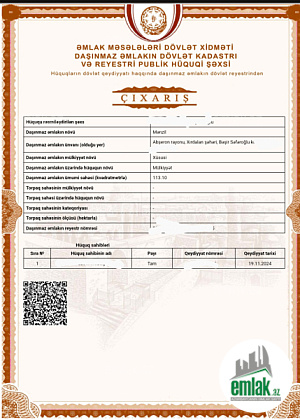 Mərtəbə: 8/9   Sənədin tipi: Çıxarış (Kupça)