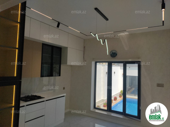 Salam hər vaxtınız xeyir sizə Şüvəlanda 3 sotda ümumi sahəsi 140 kv olan 1 mərtəbə 4 otaq 2 sanuzelli bağ evini təklif edirik, ev bütünlükdə isti döşəmədir və mətbəx mebeli ilə təmin olunub, həyətində filterli hovuzu pul...