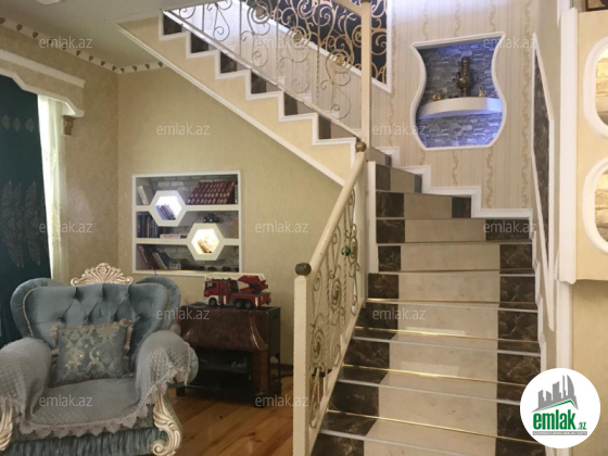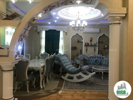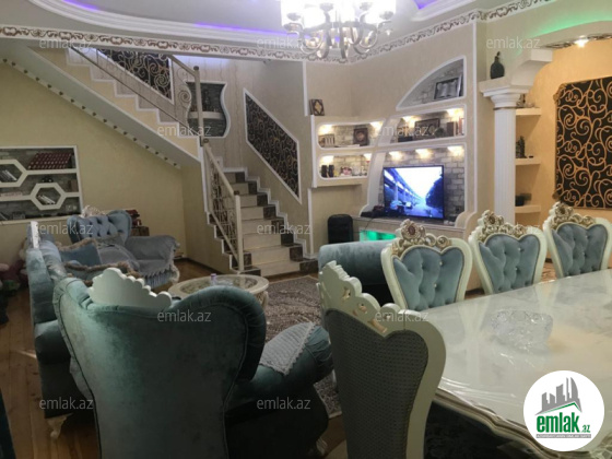 Məhəmmədli qəs, mərkəzi hissədə, 1 sot torpaq sahəsində tiklmiş, 3 mərtəbəli 5 otaqli: (1-ci mertebe qaraj, metbext, sanuzel və ayri giris cixis olan gözəllik salonu var. 2-ci mərtəbədə qonaq otaği, sanuzel, metbext və 1 yataq otaği var. 3-mərətəbədə böyük zal, 2 yataq otaği və terras balkonu var) ümumi 220 kv.m sahəsi olan həyət evi (hazirda 4%-lik ipotekadadir ayliq 523Azn ümumi 75000 azn borc var banka) nağd 150'000 manata satılır. Bütün sənədləri qaydasındadır. Kupçasi var. Ev əsas yola çox yaxın olduqundan 1-ci mərtəbəsi Obyekt kimi istifadə olunur. Suyu, qazı, işığı daimidir və mərkəzləşdirilmiş kanalizasiya qovşağı var və mənzildə kombi sistemi quraşdirilib. Döşəməsi taxta, mətbəx-hamam-tualeti isti poldur. Bu nömrənin 898-də vatçap var!