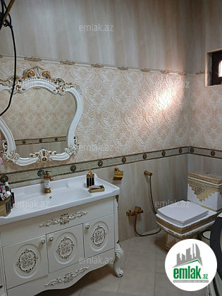 Şexsi tikilmis heyet evidir . Alt ust monalit betondur...7 otagdan ibaretdir . Orta temirli 6 sotun icinde.Otaglar genisdir. Evin icinde heyetin de hamam sanuzel var. Heyetde 10 t su baseyini var. Qaz su isig internet ...