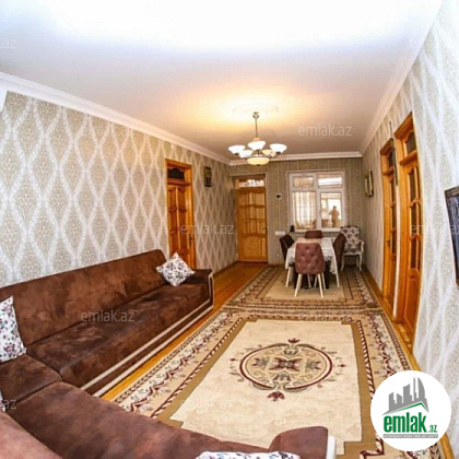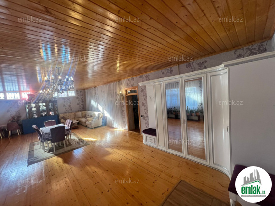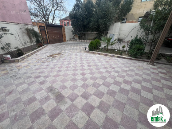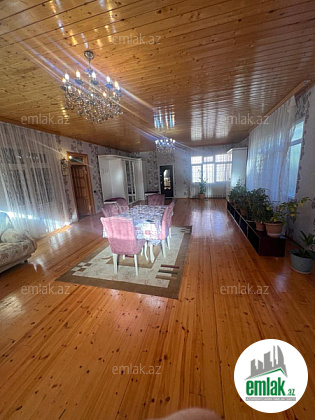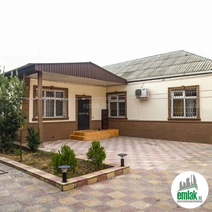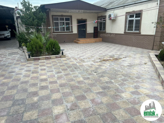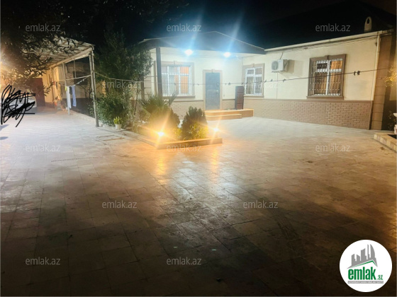 Şexsi tikilmis heyet evidir . Alt ust monalit betondur...7 otagdan ibaretdir . Orta temirli 6 sotun icinde.Otaglar genisdir. Evin icinde heyetin de hamam sanuzel var. Heyetde 10 t su baseyini var. Qaz su isig internet ...