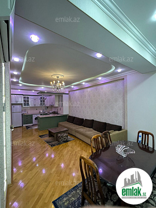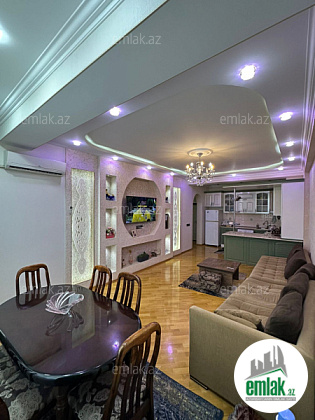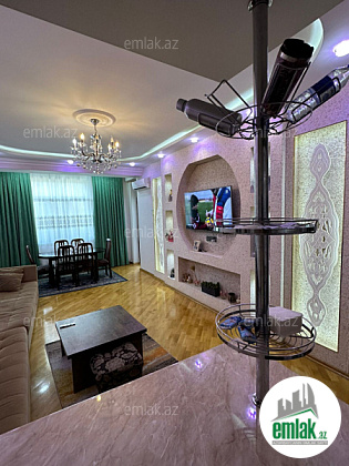 105 m² tam təmirli, tam əşyalı, tam şəraitli, hər cür məişət avadanlıqları ilə təchiz olunmuş evdir.