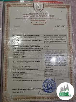 - Əmlakın növüTorpaq