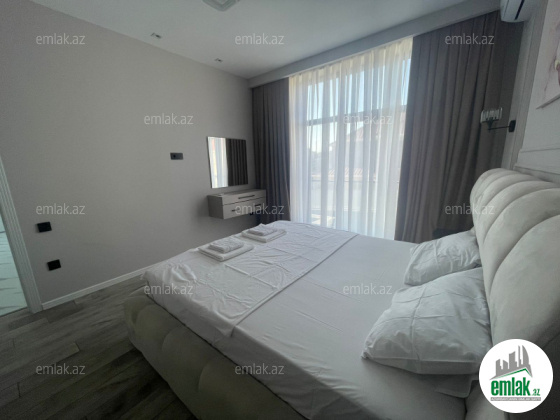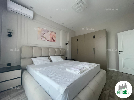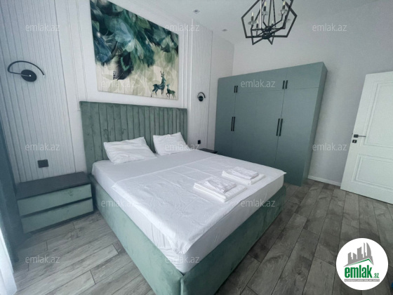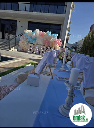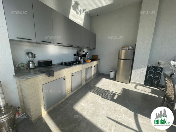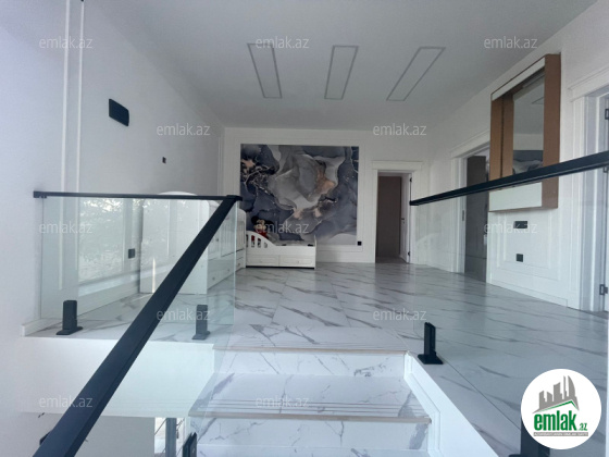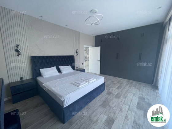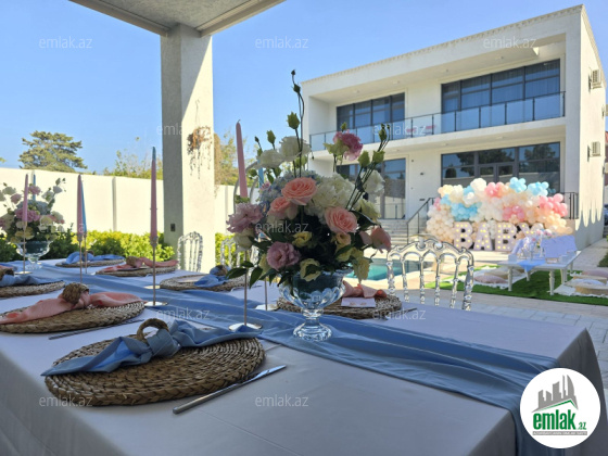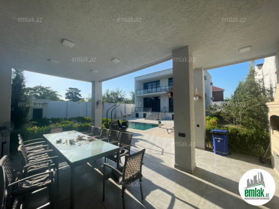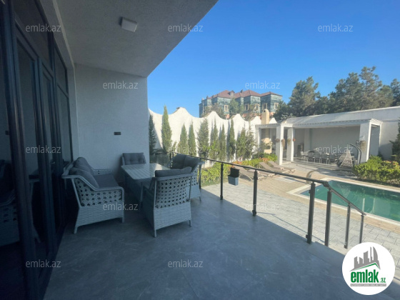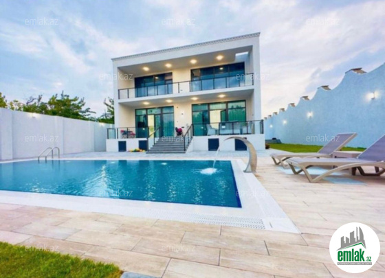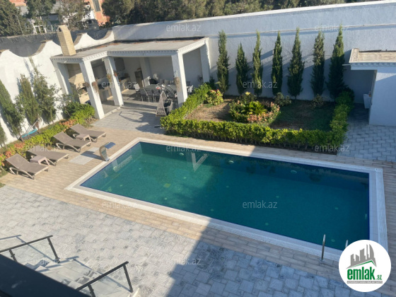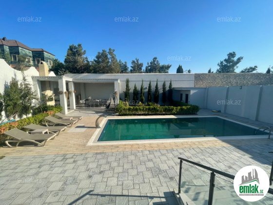 Tam təmirli və əşyalı modern tipli bağ evi kirayə verilir. 2 mərtəbəli evdə 1 geniş zal, 1 mətbəx, 4 yataq otağı, 2 dəhliz, 2 s/q var. 8 sot həyətdə 10x4 metr daşma tipli isti hovuz, besaetka ( maqalxana ilə), s/q və 3-4 maşınlıq parklanmağa yeri var. Həyətdə dekorativ şam ağacları var. Qaz, işıq, wi fi daimidir. Kombi və bütün otaqlarda kondisionerlər, pultla idarə olunan darvaza mövcuddur..