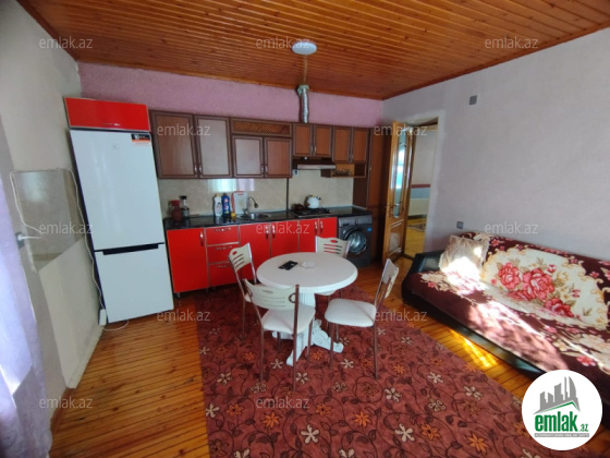 2 yataq otaqi, zal, metbex, hamam tualet, balkonu, letni metbexi, heyeti, heyetde her cur kacelisi, oturmaga yerlerli, su, qaz, iwiqi daimidir, wifi, smart tv, paltaryuyan, kombi, 9 neferlik yataq var, ( yay bayram qiymeti ferqlidir ) daha etrafli zeng ve whatsap aktifdir.