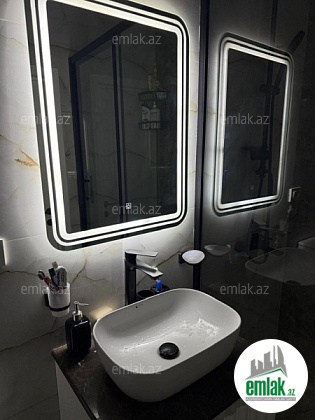 Döşəmə: Təbii parket İstilik sistemi: Kombi,qranitlə döşənmiş sahələr isti polnan təmin olunub.Mənzildəki bütün texnikalar yeni və bahalıdır.Bahalı mətbəx mebeli də göz oxşayır.Sakinləri mədəni və oturuşmuş qonşuluq mühiti.Binada sürətli liftlər və daimi mühafizə sistemi mövcuddur.Yaxınlıqda məktəblər, lisey,bağçalar, iri supermarketlər, idman meydançaları,MakDonalds,apteklər və digər zəruri obyektlər yerləşir.Memar Əcəmi metrosuna və əsas nəqliyyat yollarına olduqca yaxın məsafədədir.Avtobus marşrutları:525,156,515,92,205,79,85,9,165,119,135,61,65,508,7B,18 və s.