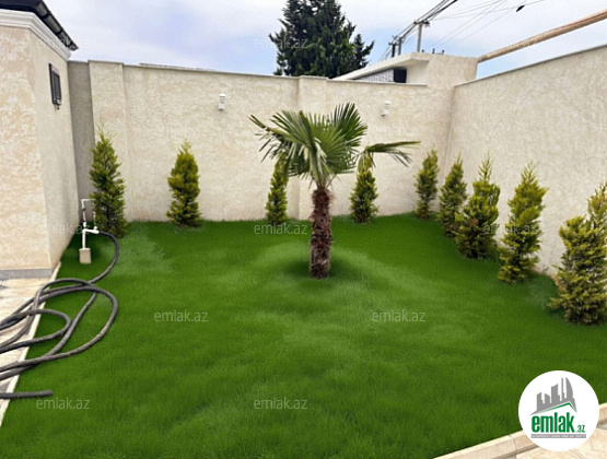 Yaşıl qazon və palma ağacları ilə gözoxşayan həyət