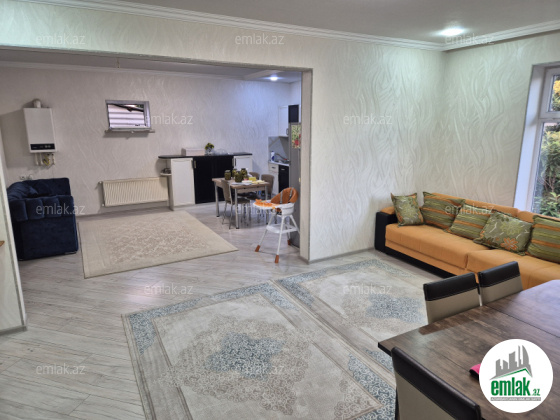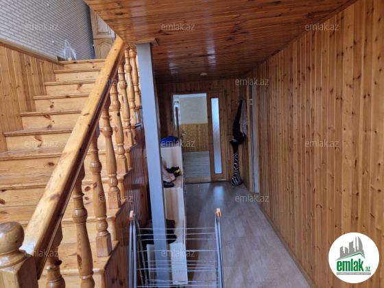 Ev 2 mertebedi. Heyetinde 4 tonluq su anbari var. 48 km² qaraji var, meyve agaclari var. Qazı, suyu, işığı daimidi. Eve baxmaq ucun axsam saat 6 dan sora gele bilersiz.233 nomreli mektebin yani
