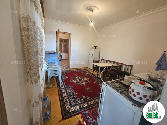 Ev 3 sotun içində yaşayışa tam yararlı 1 zal 12x3 2 yataq otağı 5x4 6x4 mətbəxi 3.6x4 1hamam otağı 2 sanuzel yay mətbəxi 12x3 anbarı giriş hall 10x4 sənədləri tam qaydasında telefon xətti mövcuddur. İsti soyuq suyu daimi həyətyanı sahəsi meyvə ağacları əkin yeri, həyətin girişində 1 maşınlıq yeri vardır.