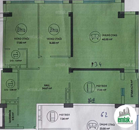 Əşyaların çox hissəsi qalır. 3 kondisoneri və 3 balkonu var.
