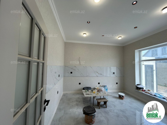 Evin tavani ve polu 2 qat izolasiya olub.Darvaza pultla odare olunur.Damafon qurawdirilib.yolu asvaltdi.Son tamamlanma iwleri gedir.1aya tam tehvil vermek olar.Qapi,laminat,aboy ve heyetin metlagi rengi musterinin zovqune uyugun secile biler
