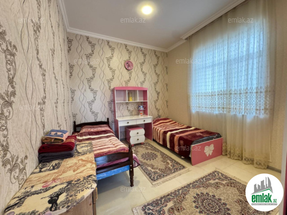 Ev əşyalıdı, 2 kondisioner. Kombisi. Hamamda isti polu var. Həyətdə kamerası var. Həyətdə çəni var. Televizoru yutubludu. Şəkildə gördüyünüz kimi şkaflı, qoşa və tək kravat. Ev işiqlıdı. Kamran bəy vatsap...