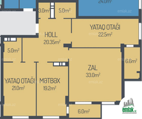 - Otaq sayı: Qanuni 3 otaq