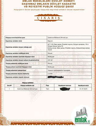 - Əmlakın növüBağ evi