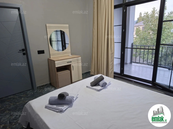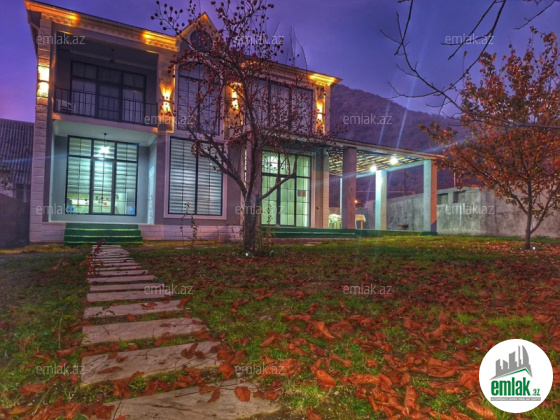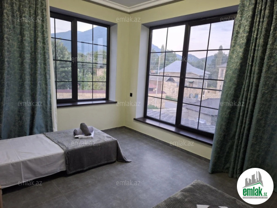 Ev Qebelenin merkezi kucelerin birinde,kanata luna parka 4-5 deqiqelik mesafede yerlesir.evin her bir seraiti var.1 ci mertebede hamam tualet,gozel kuxnasi ve cox boyuk qonaq otaqi var.2 ci mertebede 3 yataq otaqi hamam tualet var.7 neferlik tam yatavaq var.2 otaqdan balkona cixis,her otaqda kandisaner.Heyettinde samavar,mangal,4.50 uzunu 2.50 eninde Intex filtirli hovuz 8-9 neferlik oturmaq ucun bestekasi stol stulu var.Ev yalniz Ailevi verilir.Qiymet en azi 2 gun ucun yazilib.(Ev dekabr ayinin 15 kimi zanitdi.yeni il bayram gunleri qiymet 200 azn)