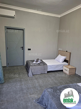 Zəng edərkən qalacağınız tarixləri və qonaq sayını mütləq qeyd edin !! 3 yataq otağı, 1 qonaq, 2 sanuzel, 2 mətbəx. Minimum 10-15 nəfər qala bilər. 3 divan var. İstilik kombi, kondisioner. Həyətə 3 maşın yerləşir. Baseyn...