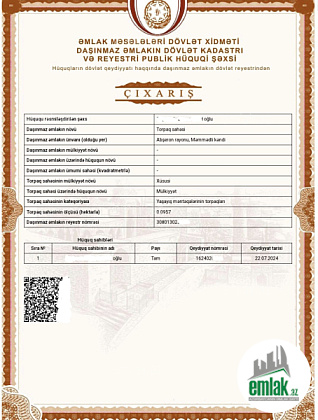 - Əmlakın növüTorpaq