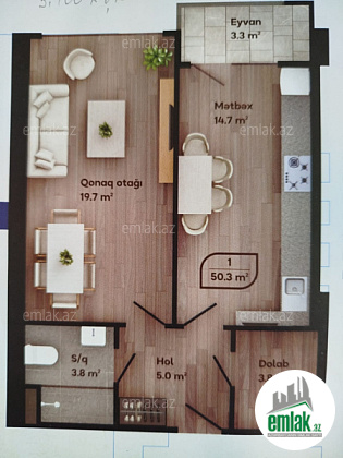 Qanuni 2 otaq - studio tipli mənzil .