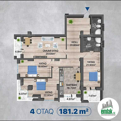 Ümumi sahəsi 181,2 kv/m.