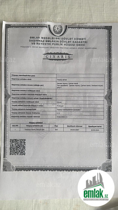 Merdekan qesebesinde cox prestijli bir yerde, uzu şeherden Merdekana gelende, Merdekan korpusune qalxmamis, yolun saginda,merkezi magistral yoldan texminen 1km iceride 4 terefi yasayis olan mehellede 12 sot torpaq sahesi...