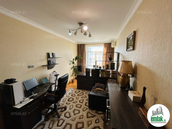17 mərtəbəli binanın 15-ci mərtəbəsində, 5 otaqlı mənzil satılır. Ümumi sahəsi 180 kv.m., Çıxarışda 176 kv.m.. 2 mənzilin birləşməsi. 1 otaqlı (56 kv.m.) + 4 otaqlı (120 kv.m.). Əlavə olaraq, yay mətbəxi mövcuddur. Kommunal xidmət xətləri (su, qaz, işıq) ayrıdır və ödənişləri ayrı-ayrılıqda edilir. Alıcının istəyi təqdirində, rahat bir şəkildə,mənzilləri ayırmaq olar. İstilik sistemi avtonomdur (KOMBİ). Ayrıca, hər mənzildə ehtiyat su çəni quraşdırılmışdır.