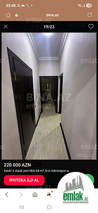 Satılır 2 otaqlı 68 m2 yeni tikili 8 km