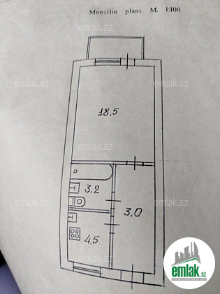 kupça 30 kv, balkonla birlikdə 35 kv !!!