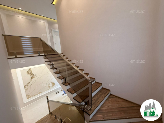 1ci mərtəbədə 50 kv.m zal, böyük və kiçik yataq otağı, içində sanuzel, mətbəx və sanuzel, 2ci mərtəbədə 4 yataq otağı, sanuzel, 60 kv.m terras və terrasa çıxışda mini mətbəx, aşağıda bağlıq sahəyə açılan 45 kv.m böyük yay mətbəxi, yarım zirzəmidə 2 otaq var, sauna, idman zalı kimi istifadə edilə bilər. Həyətdə əlavə bir sanuzel, əlavə olaraq 13 tonluq su çəni quraşdırılıb.