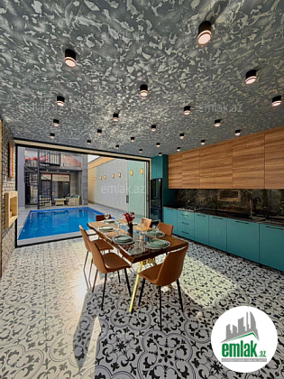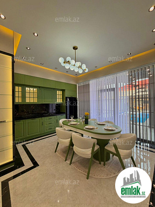 Tam Əşyalı!! Bakı Bağları şirkəti sizə ekoloji təmiz Mərdəkan qəsəbəsində 5 Sotda 1 mərtəbə 200 kv.m 5 otaqlı super bağ evini təklif edir. Bağ evi zal, mətbəx, 4 yataq otağı, holl və 4 sanuzeldən ibarətdir. Otaqlarda asılmış pərdə və lyüsturları, qonaq otağı və yataq otağı mebelləri, bütün otaqlarda tv, divar rəsmləri, hündür tavanları, qarderob, duş kabinalı sanuzeli, mebelli mətbəxi, quraşdırılmış işıqlandırma sistemi var. Ev yüksək zövq və keyfiyyətlə təmir olunub. Su, qaz, işıq daimidir. İstilik sistemi kombidir, isti döşəməsi var. Həyətində geniş filterli hovuzu, mətbəx mebelli, texnikalı və tv olan cambalkon besedka, evin üst hissəsində terası və oturacaqları, stol-stulu. manqalxana, yay-qış mətbəxi, maşın saxlamaq üçün yer, pultla idarə olunan darvaza, dekorativ ağacları və gülləri, su anbarı, sensorlu gecə işıqları var. 4 mövsüm yaşamaq üçün əlverişlidir. Yolu qapıya kimi asfaltdır. Kupçası (Çıxarışı) var. Start qiyməti 520 000 AZN. Qeyd : Bakı ətrafı qəsəbələrdə, xüsüsən də Mərdəkan, Şüvəlan, Bilgəh, Nardaran və s. ərazilərdə satışda olan digər bağ evləri və villalarımız var. Buyurun bizə müraciət edin.