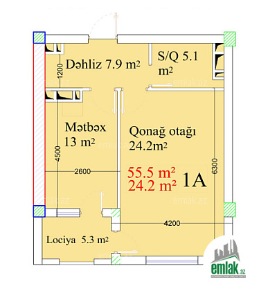 - Sahə55 m2