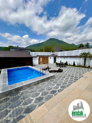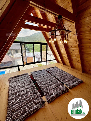 Həyətində qış aylarında belə istifadə edə biləcəyiniz isti hovuzu var. Həmçinin parking yeri, 5,5 tonluq yeraltı su rezervuarı, ayrıca kombi otağı və 20 kv.m.-lik əşya yığmaq üçün səliqəli zirzəmisi var. Uşaqlar və böyüklərin əyləncəsi üçün yelləncək, balans yelləncək və qamak da var. Ev keyfiyyətli materiallardan və bahalı mebeldən istifadə olunmaqla tikilib (video və şəkillər var). Ən əsas üstünlüyü isə Qəbələnin ən gözəl yerində, dağ və meşə mənzərəli, sakit və geniş küçədə yerləşməsi və ətrafda A-frame evlərin olmasıdır. Günlük icarəyə verilir, qonaqlar yerli və əsasən də xarici turistlərdir. Booking-də çox yüksək reytingə malik villadır. Ev yüksək zövqlə dizayn edilib və tam əşyalı satılır. Evin Çıxarışı Kupçası var.