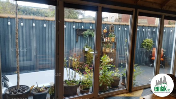 Şexsi tikilmis heyet evidir . Alt ust monalit betondur...7 otagdan ibaretdir . Orta temirli 6 sotun icinde.Otaglar genisdir. Evin icinde heyetin de hamam sanuzel var. Heyetde 10 t su baseyini var. Qaz su isig internet ...