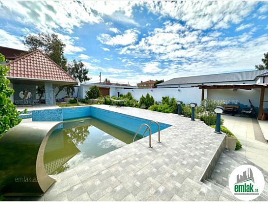 Xezer rayonu Merdekan qesebesi \'\' Veten \'\' restoranina yaxin 3.5 sot torpaq sahesinde 1 mertebeli 150 kvm bag evi satılir. holl ,1 zal , metbext , 3 yataq otagi,2 sanuzeli .qarderob movcuddur.Heyetinde hovuz,bisetka ...