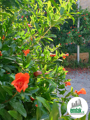 Geniș həyat evi, bağçasinda meyvə axaçlarliyla