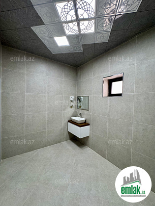 Genis koridor ve elave genis ve isiqli otaqlar ayrilib, evin altinda qaraj ve elave 2 eded konekci otaq var.