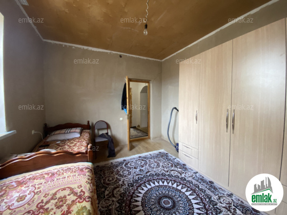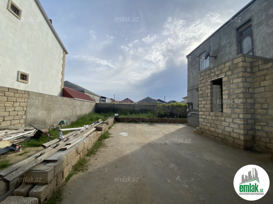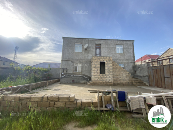 4 sot torpaqda 2 mərtəbəli 200 kv/m, ikiqat hörgü. Birinci mərtəbədə 2 otaq (təmirsiz), mətbəx, sanitar qovşaqlar. İkinci mərətəbədə 3 otaq (təmirli). İsitmə sistemi kombi. Həyətdə əl damı və toyuq damı, 10 tonluq su çəni. Bütün kommunal xidmətlər var.