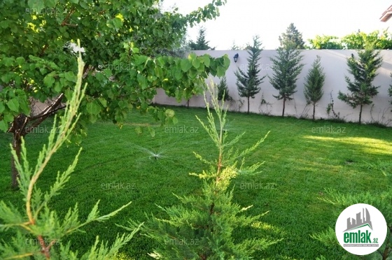 Həyətin 2.5 sotuna qazon salınıb, qazon və ağaclar üçün avtomatik suvarma sistemi quraşdırılıb.