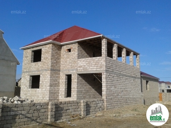 Her tərəfi baglı 3 sotun(12.0m*25.0m) icerisinde 12.0m*11.0m iki mertebeli ev.Ümumi sahə 265kv.m. Bünövrə 40sm*60sm beton karkas, kursulu 1.20m dasdan,I mərtəbə ilə II mərtəbənin arası monolit 0.20m,II mərtəbə kəmərli,damı cerepica paket örtüklü, çornıy polu var,iki dasdan tikilib.I mərtəbədə holl,boyuk zal,mətbəx,hamam-tualet,qaraj,qarajın arxasında anbar(anbarı otaq kimi də istifadə etmək olar),II mərtəbədə 3 yataq otagı,hamam-tualet,böyük aynabənd,bütün otaqların hamısının ayrı-ayrı girişləri var. Tikinti sırf özüm üçün nəzərdə tutulub. Ev lahiyə əsasında bütün tikinti qaydalarına ciddi əməl olunması ilə inşa edilmişdir. Ətrafda yaşayıs var. Su,işıq,qaz var.əlavə su quyusu da var. Torpağın öz adıma dövlət reestrindən çıxarışı var.