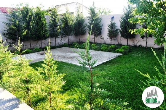 Həyətin 2.5 sotuna qazon salınıb, qazon və ağaclar üçün avtomatik suvarma sistemi quraşdırılıb.