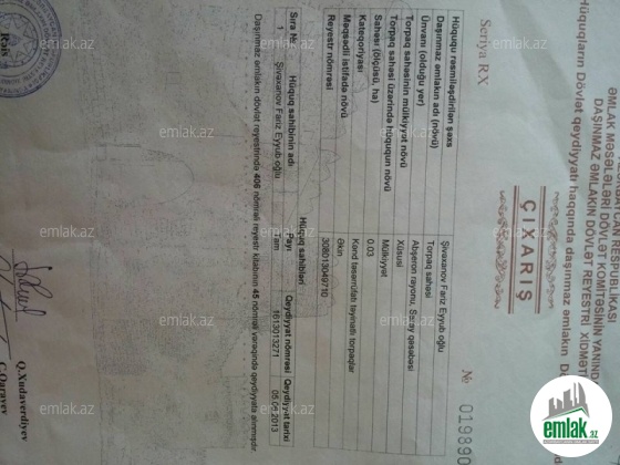 - Əmlakın növüTorpaq