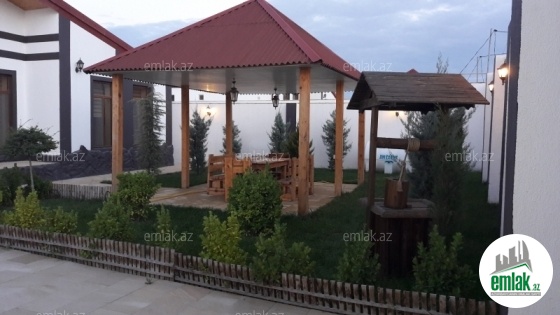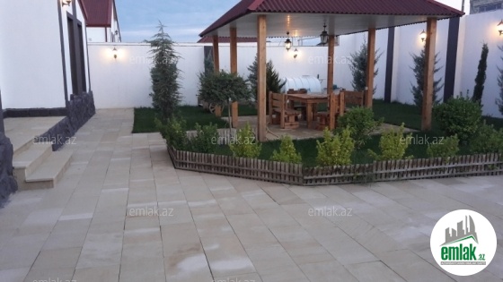 В курортном пригороде г. Баку в Мярдяканах. продается 1-но этажная дача-дом, расположенная на 4 сотах приватизированной земли. В доме 4 комнаты: 1 гостиная ,3 спальной комнаты , 2 с у, 118 кв.м, отличный проект, продается вместе с новой мебелью, Пол дачи уложен немецким ламинатом, комнаты просторные и светлые, высокие потолки. Отопительная система комби, встроенная кухонная мебель, люстры, занавеси, двор уложен плитами, беседка, декоративные деревья, цветы, Подача газа, света, воды питьевой постоянная. Единая купчая на дом и на землю. Дом находится рядом с автобусной остановкой, в жилом районе с развитой инфраструктурой ( рядом супермаркет, магазин и прочее) и рассчитан для круглогодичного проживания, солидные соседи. Стоимость дачи 140 000 манат