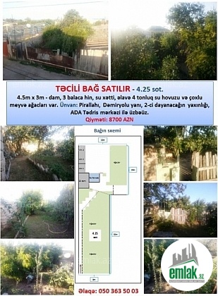 TƏCİLİ BAĞ SATILIR - 4.25 sot.