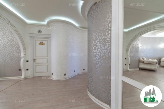 Satilir 17/16 mertebesinde 175 kv mt,4 otaqli super temirli qazli menzil.su,ishiq daimidir,pol parketdi, istilik sistemi kombi,3 balkonu var,24 saat mihafize xidmeti,2 SIGMA-lifti,2 mertebeli yeralti qaraji var,yelchekendir,otaqlar ayri ayridir,genish heyeti var,etrafinda magazalar marketler,orta mekteb,ushaq baxcasi var,yenilenmish lifti,dayanacaqa yaxindir.evi dizayner ishleyib