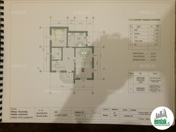 Otaqlar: 6 otaq + mətbəx + birləşmiş sanitar qovşaq